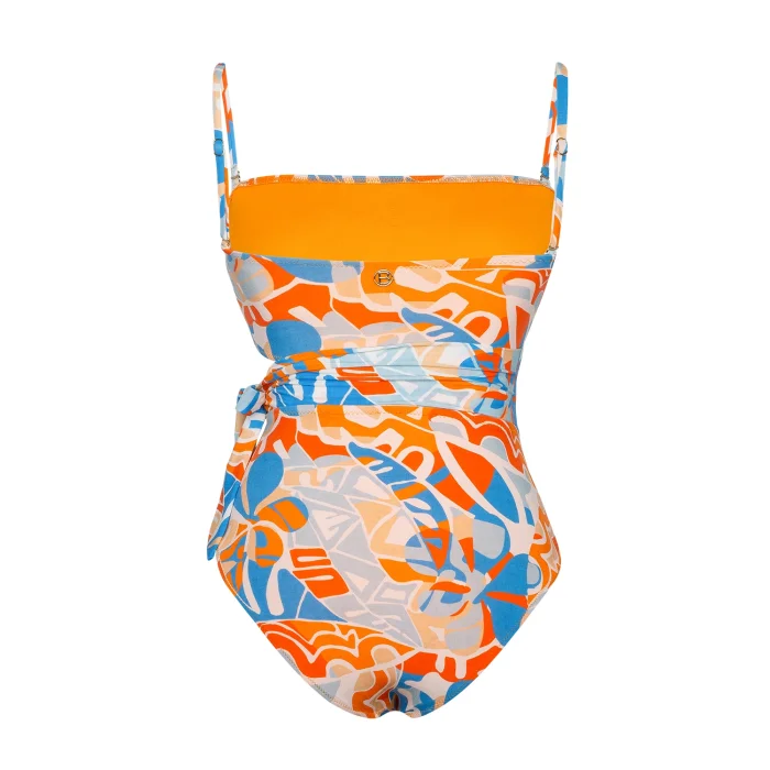 Gobi Abstract Floral Pattern Strapped Belted Swimsuit