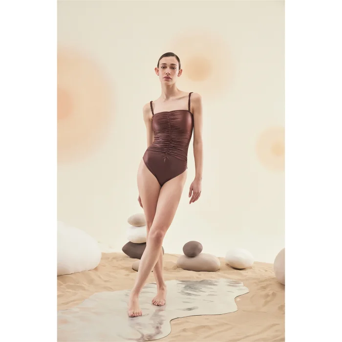 Product: Hamada Burnt Umber Draped Strapless Swimsuit