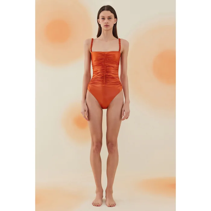 Product: Hamada Flame Orange Draped Strapless Swimsuit