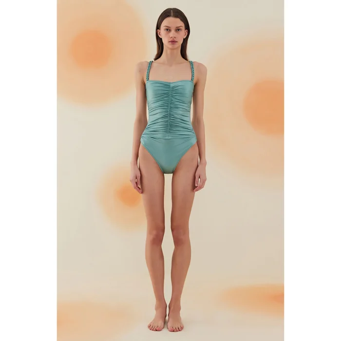 Product: Hamada Mint Green Draped Strapless Swimsuit