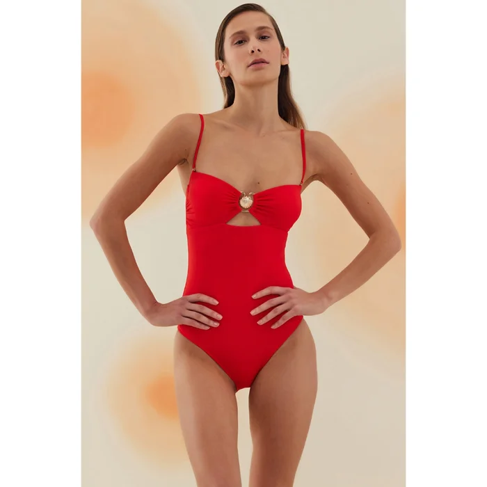 Product: Judaean Scarlet Red Seashell Strapped Straplez Swimsuit