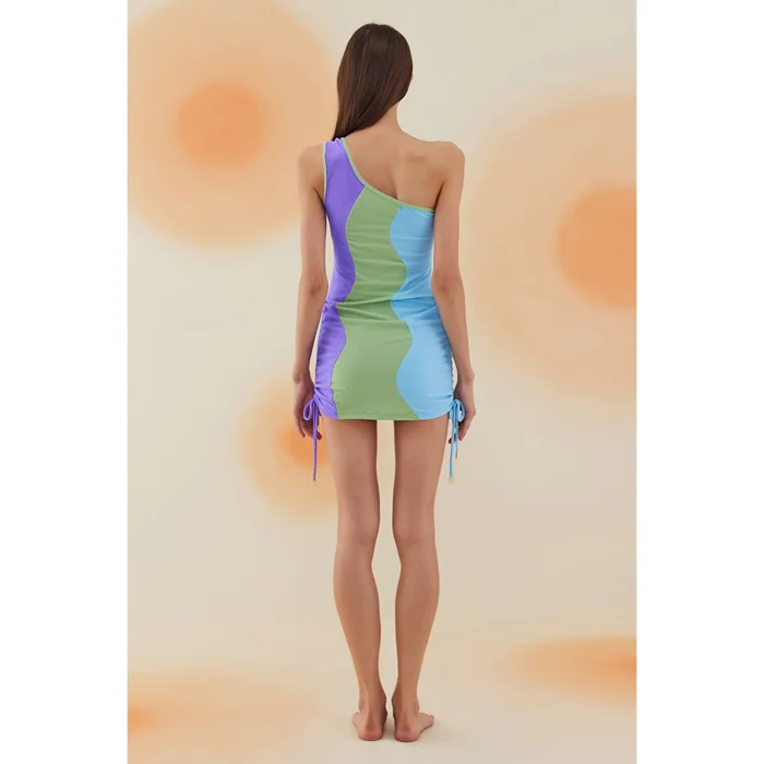 Meska Pistachio Green, Sky Blue And Mauve Purple Terry One Shoulder Swimsuit