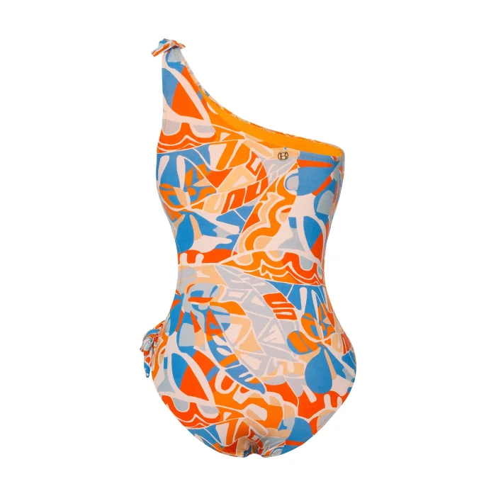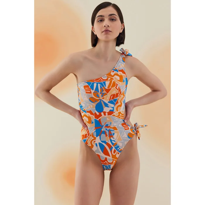 Product: Peyote Abstract Floral Pattern Lace Up One Shoulder Swimsuit