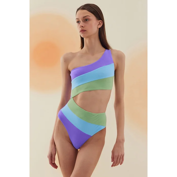 Product: Playa Pistachio Green One Shoulder Asymmetric Swimsuit