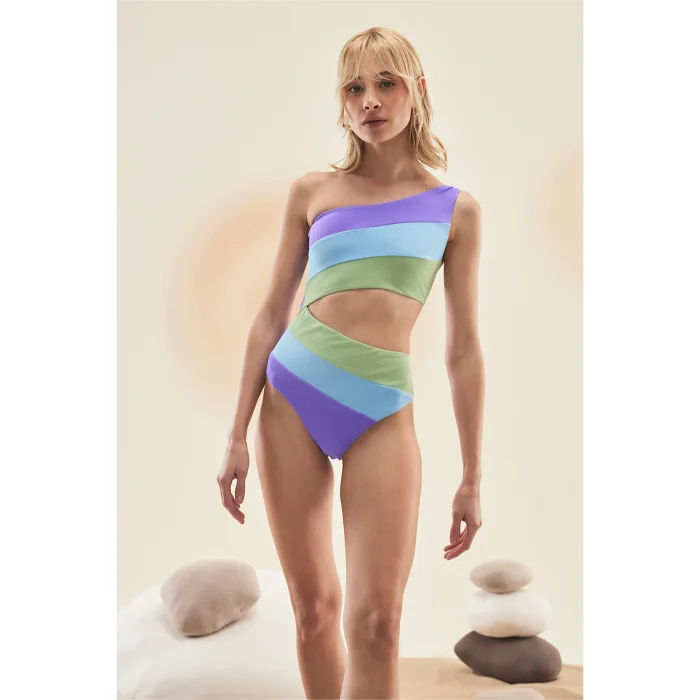 Product: Playa Pistachio Green One Shoulder Asymmetric Swimsuit