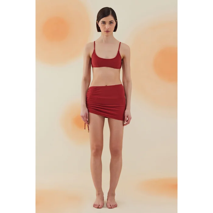 Italian fabric. Made from recycled fibre. Ultra resistant to chlorine. The fabric structure is soft, flexible and body-hugging. Resistant to sunscreen.