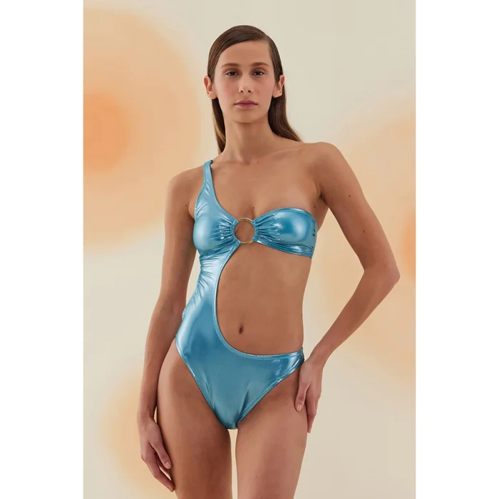 Product: Tatacoa Shiny Crimson Red Ring Accessory One Shoulder Swimsuit