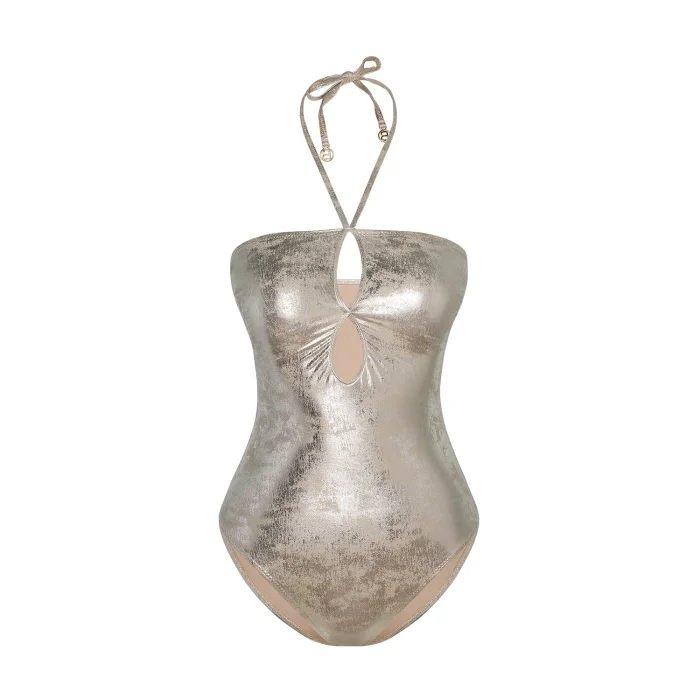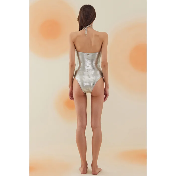 Tihama Shiny Sonic Silver Strapless Swimsuit