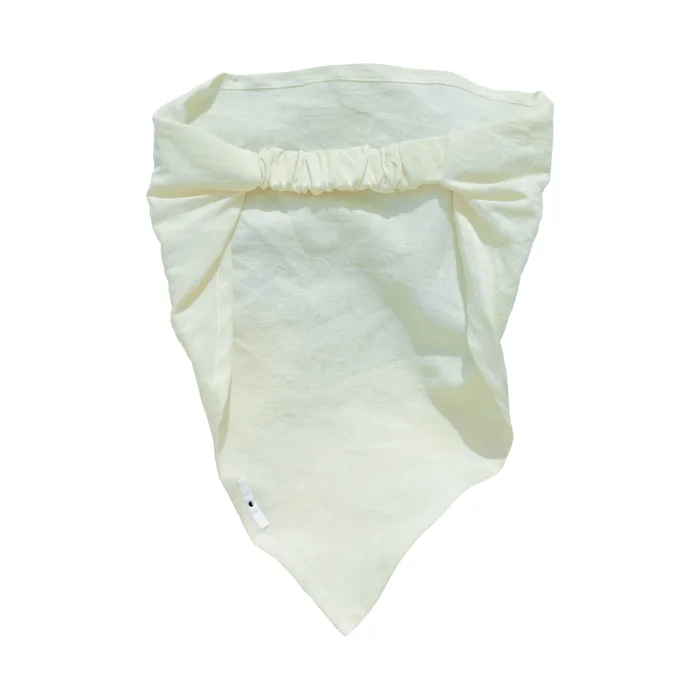 This one-size bandana with an elastic back and pleated detailing makes it easy to slip on and off. Delicately dyed with plants using only sustainable processes with no chemical treatments in our studio