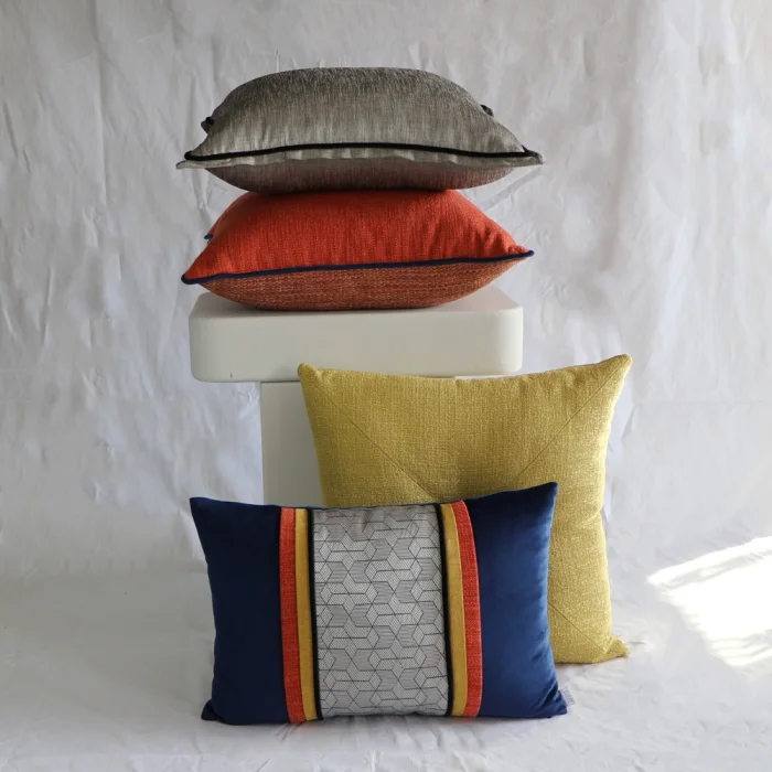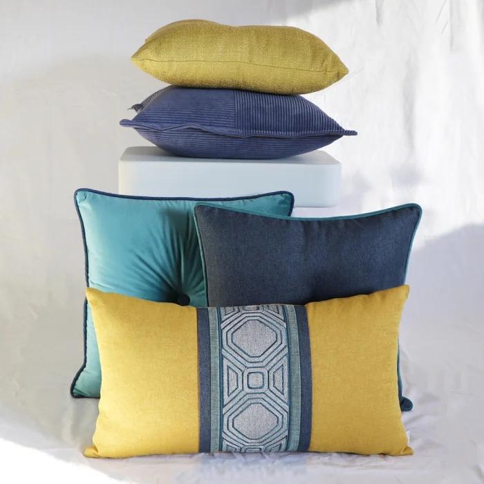 Yellow Square, decorative pillow with buttons The back of the pillow