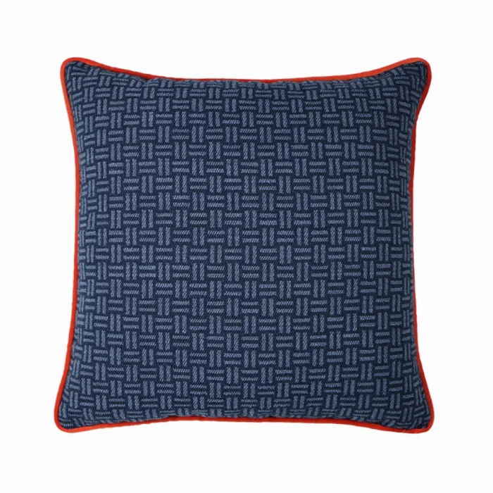 Self-patterned, square, decorative pillow with corduroys on the edges.