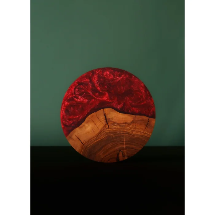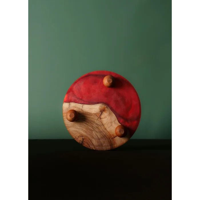 It is 100% handcrafted The wooden leg at the bottom adds warmth and a touch of harmony with nature to the design Diameter: 22mm Material Thickness: 18-20mm Foot Height: 30mm wooden foot Each piece; The grain structure of the tree is unique thanks to the distribution and form of the epoxy There may be variations in form, color, and patterns It is completely domestic production