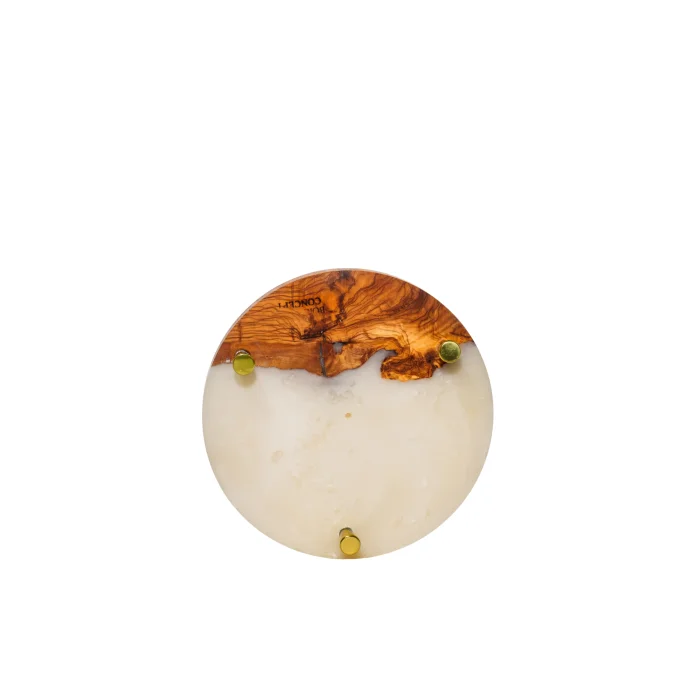 It is 100% handcrafted The wooden leg at the bottom adds warmth and a touch of harmony with nature to the design Diameter: 22mm Material Thickness: 18-20mm Foot Height: 30mm wooden foot Each piece; The grain structure of the tree is unique thanks to the distribution and form of the epoxy There may be variations in form, color, and patterns It is completely domestic production