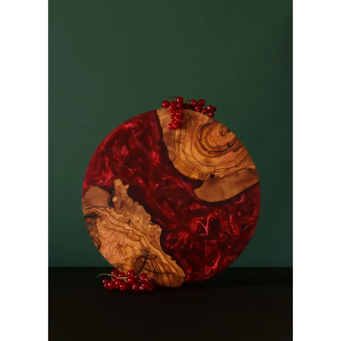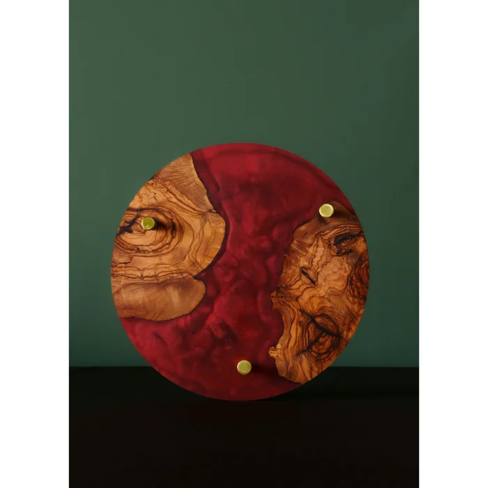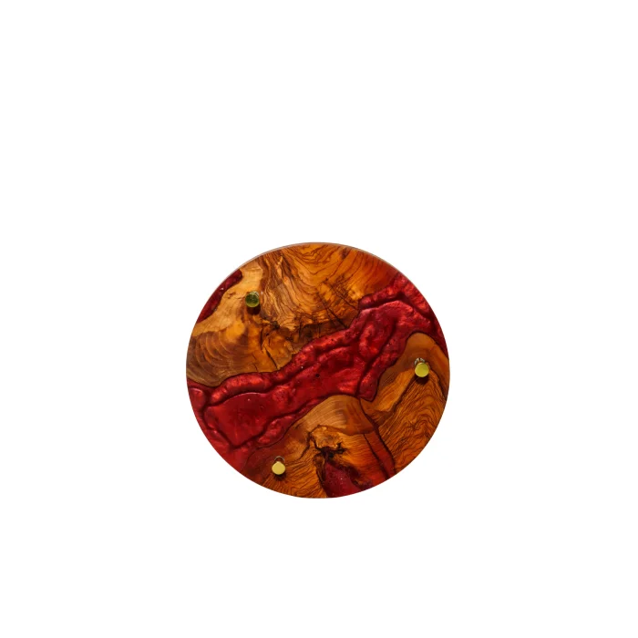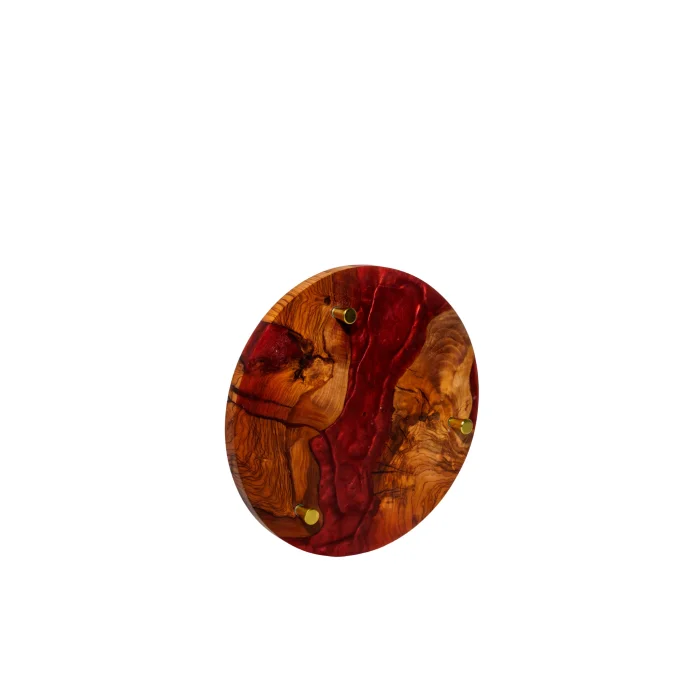It is 100% handcrafted The wooden leg at the bottom adds warmth and a touch of harmony with nature to the design Diameter: 30mm Material Thickness: 18-20mm Foot Height: 30mm wooden foot Each piece; The grain structure of the tree is unique thanks to the distribution and form of the epoxy There may be variations in form, color, and patterns It is completely domestic production