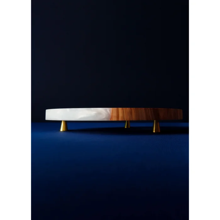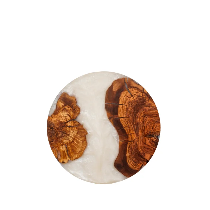 It is 100% handcrafted The wooden leg at the bottom adds warmth and a touch of harmony with nature to the design Diameter: 30mm Material Thickness: 18-20mm Foot Height: 30mm wooden foot Each piece; The grain structure of the tree is unique thanks to the distribution and form of the epoxy There may be variations in form, color, and patterns It is completely domestic production