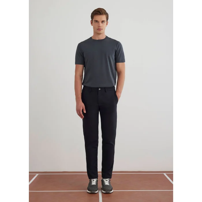 Regular Fit Chino Pants with Snap and Zipper Front Closure, Regular Front Pocket, Zipper Closure and Flat Back Pocket, Pocket Bag Logo Printing Detail. ~ Made of specially developed hydrophobic technical fabric, this product is designed with style codes that reflect city life. Fabric; It offers comfort and elegance at the same time with high performance in terms of hydrophobic, breathability, wrinkle resistance, fast drying feature.