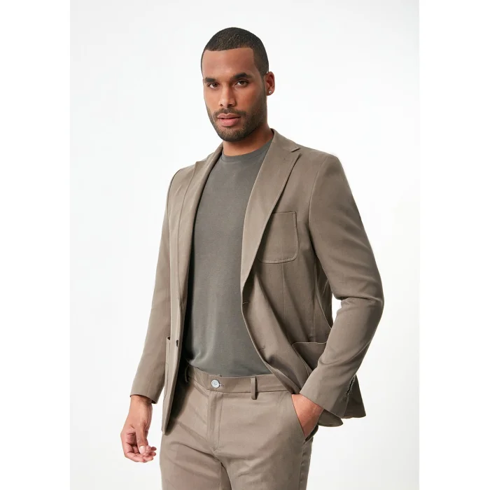 Mona neckline, Double slit, Appliqué pockets, Blazer. ~ Thanks to the breathable feature, flexible structure and smooth surface of the sensel fabric, it will add a stylish and cool touch to your modern look. While the smooth structure of the fabric offers an elegant style, it offers an excellent wearing experience thanks to its breathability, softness and comfortable fit