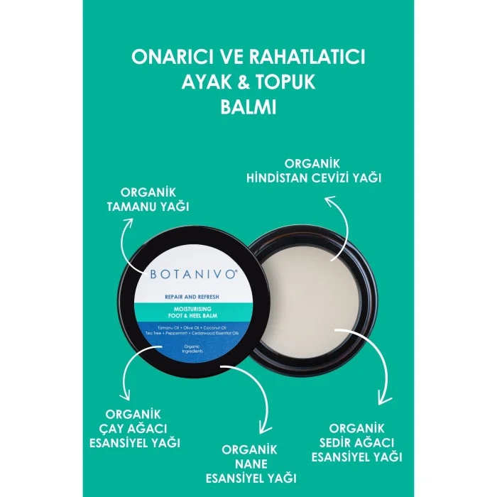 Botanivo Ayak & Topuk Balmı, yoğun nemlendirici yapısı ile kuru, çatlamış, yıpranmış ayakların ve topukların onarımına ve bakımına, özel esansiyel yağ içeriğiyle ayakların