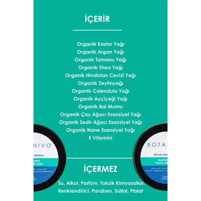 Botanivo Foot and Heel Balm helps to repair and care for dry, cracked, worn feet and heels with its intense moisturizing structure, and to rest, relax and refresh the feet with its special essential oil content.