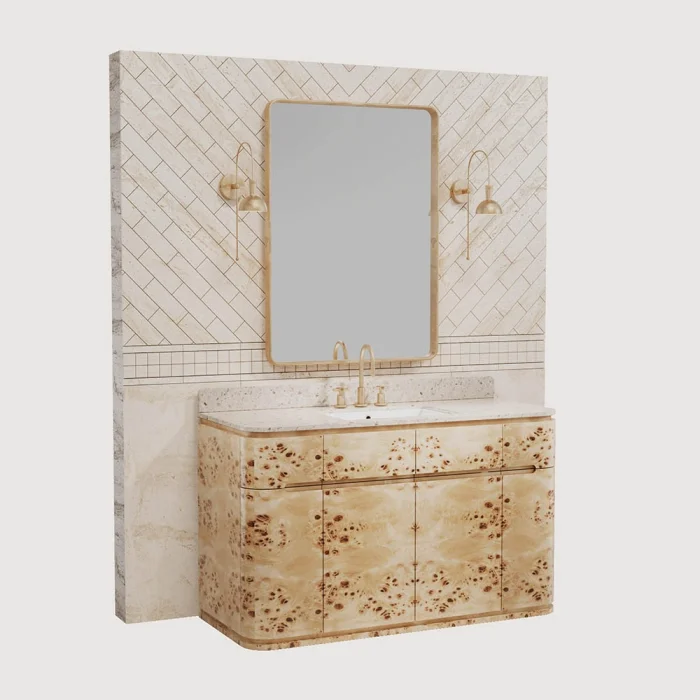 MATERIALS Body: MDF, Natural Mazel Coating Handle: Recessed Channel Handle Countertop: Belenco Sahara Beige Sink: Ceramic Undercounter Polish: Silk Matt Mirror: 4mm Plain Battery: Not Included Siphon: Not Included DIMENSIONS Width: 140 cm Depth: 60 cm Height: 85 cm Mirror Width: 80 cm Mirror Height: 120 cm