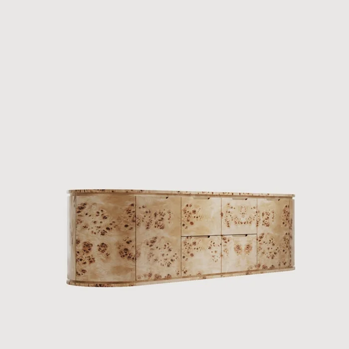 MATERIALS Body: MDF, Natural Mazel Coating Handle: Recessed Channel Handle Polish: Silk Matt DIMENSIONS Width: 231 cm Depth: 60 cm Height: 65 cm