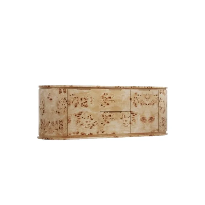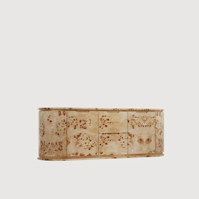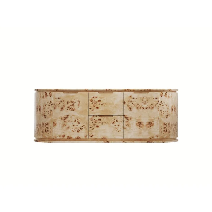 MATERIALS Body: MDF, Natural Mazel Coating Handle: Recessed Channel Handle Polish: Silk Matt DIMENSIONS Width: 187 cm Depth: 60 cm Height: 65 cm