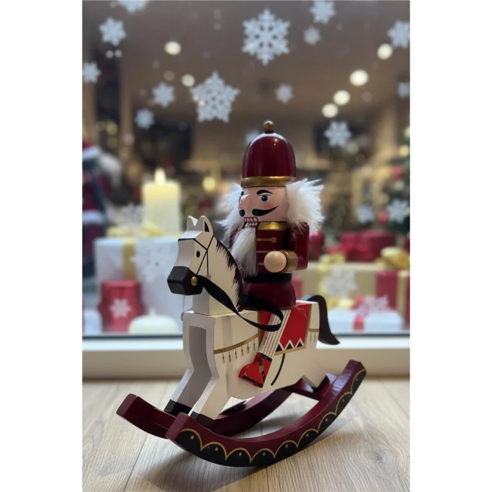 Designed with a tin soldier detail positioned on a horse figure, this decorative piece is one of the most iconic symbols of the Christmas spirit. With its elegant color transitions and hand-painted appearance, it evokes a classic collectible feel. It takes a strong stance in fireplace front, table or showcase decorations.