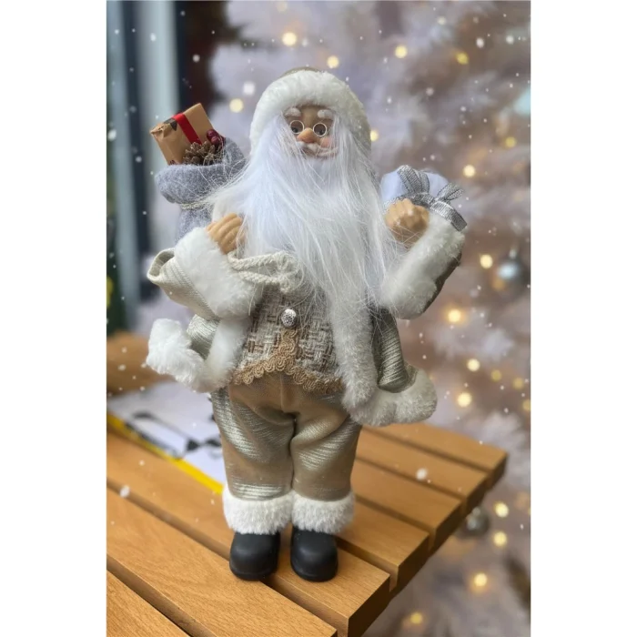 Beyaz Ve Altın Detaylı Noel Baba - 30 Cm