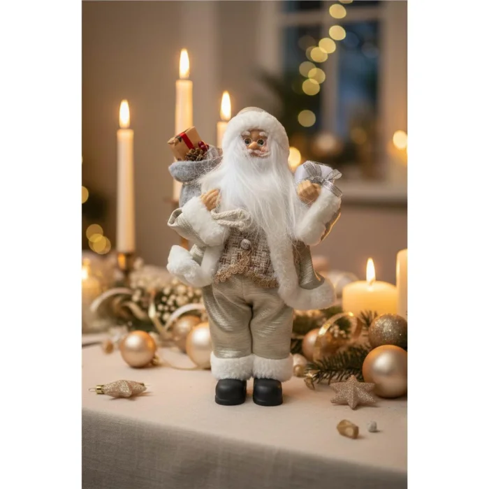 Product: Beyaz Ve Altın Detaylı Noel Baba - 30 Cm
