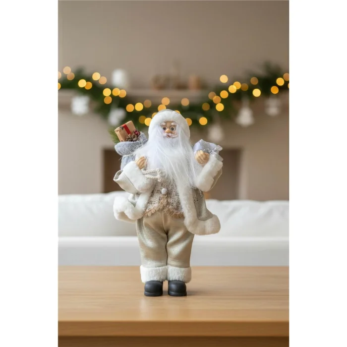 This Santa Claus, which is the symbol of elegance with its all-white tones, adds sparkle with its gold details. It is an ideal piece for those who want to create a stylish, simple and modern New Year's atmosphere.