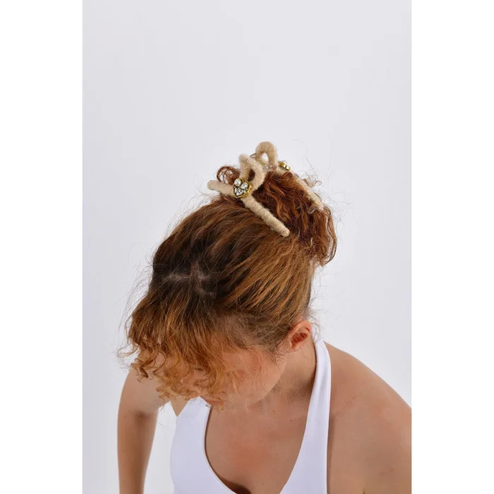 Product: Fildişi Yün Sargılı Saç Tokası