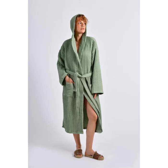 It is made of 100% cotton with waffle woven fabric. With its softness and absorbency, it offers lasting comfort with every use.