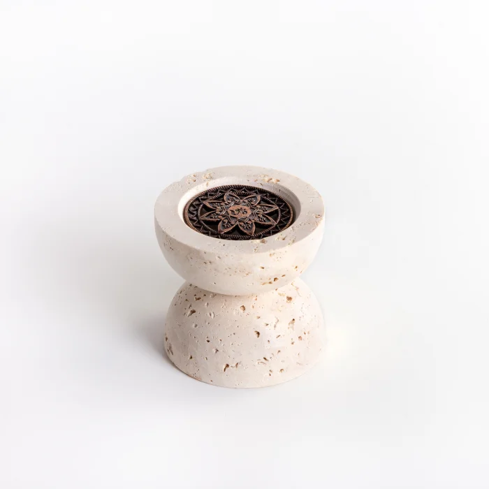 Dost incense holder from Buhu is made of natural travertine stone and is handmade. Thanks to its metal grill, it allows the coal to breathe and to get enough air inside, it ensures balanced burning of the coal. For this reason, coal must be burned on the grill.