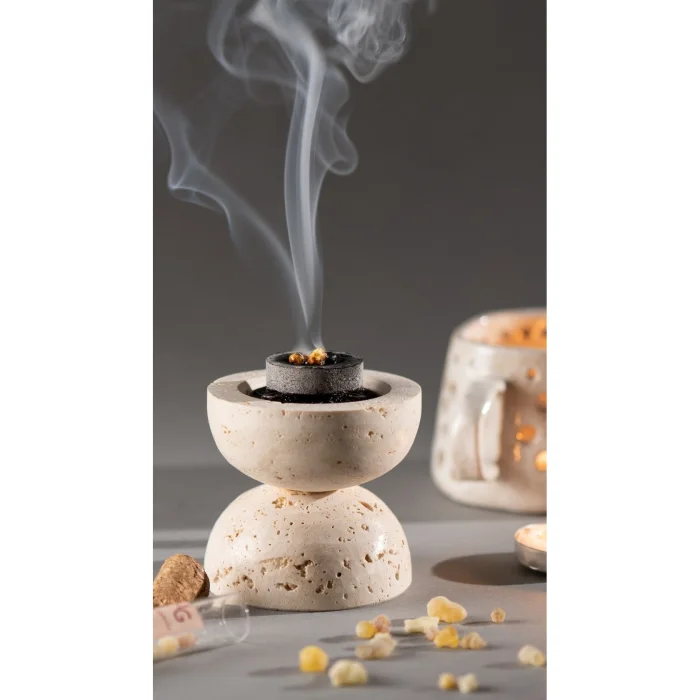 Minimalist insence burner handmade travertine incense burner, holder for decoration ceremony incense burner for charcoal