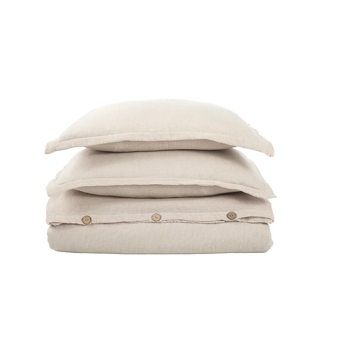 Aden mini waffle textured duvet cover set gives your bed a comfortable and inviting feeling with its softness and gentle texture, making it a comfortable option for sleeping. 75% Cotton 25% Modal STANDARD SIZE: Duvet cover/duvet cover 200x220cm Bed sheet 260x280cm Pillowcase pillowcase 50x70cm (2) Decorative pillow case (50x70 cm (2) QUEEN SIZE: Duvet cover 220x240cm Bed sheet 270x310cm Pillowcase pillowcase 50x70cm (2) Decorative pillow case (50x70 cm (2)