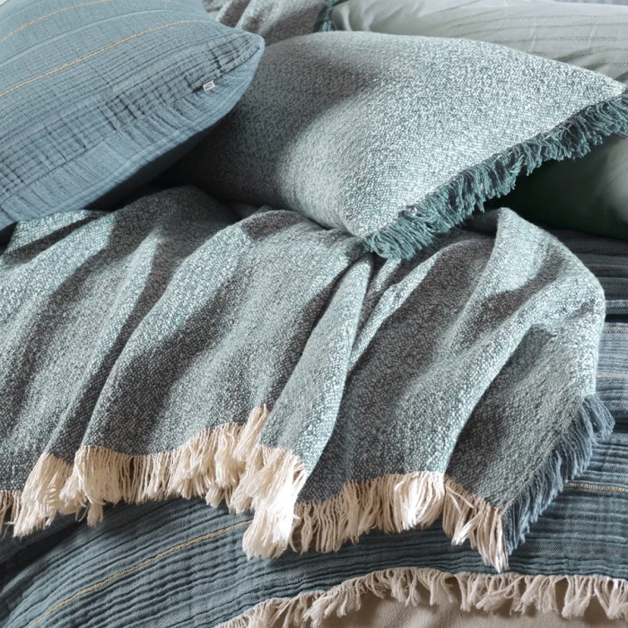 Lal cushion, which takes its name from the elegance of silence, offers a soft and warm use with its natural texture. While it adds peace to living spaces with its calm color transitions in ocean tones, fine tassel details reflect traditional weaving aesthetics. It can be used elegantly on sofas, beds or in resting corners. 100% Cotton