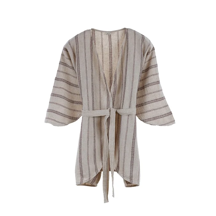 Thanks to the distinctive natural look of the muna linen dress with its lightly textured surface, it can be worn as a one-piece during the warmer months, but it can also be used as a dressing gown. 60% COTTON, 40% LINEN Size 1 (S-M) Size 2 (L-XL)