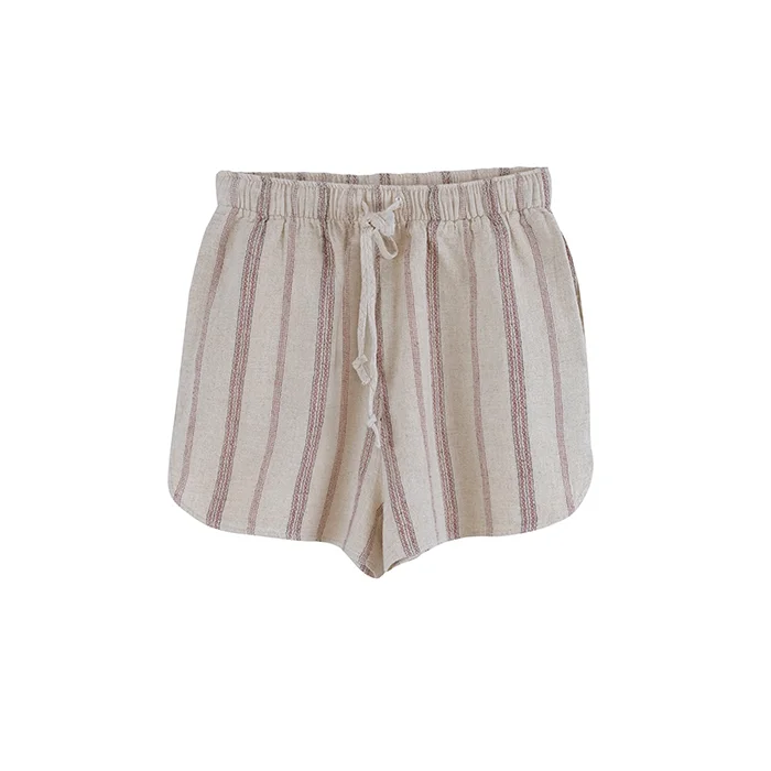 While muna linen shorts can be worn as a one-piece in the warmer months thanks to their distinctive natural appearance with a lightly textured surface, they can also be used as a team with a muna dress and muna crop. 60% COTTON, 40% LINEN Size 1 (S-M) Size 2 (L-XL)