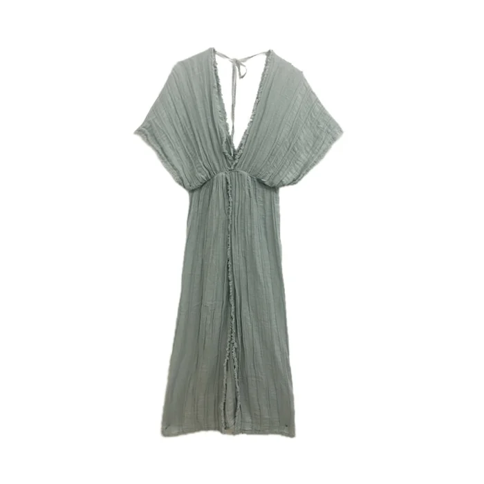 The Selene dress, which also has mythological meanings such as 'Moonlight' and 'Shining on the Moon', represents an elegance that shines like the light of the Moon while walking on the beach. "Every touch takes the user on a journey towards the fascinating stories of the sea." 55% Cotton 45% Linen Length from Shoulder: 136 cm Standard Size