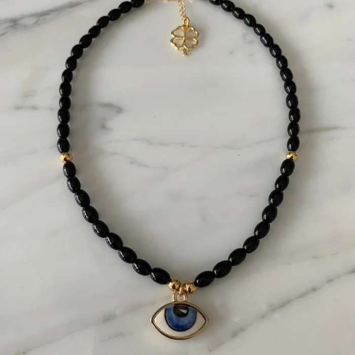 Blue porcelain eye black barley beaded necklace. Gold apparatus is a first-class coating that does not tarnish.