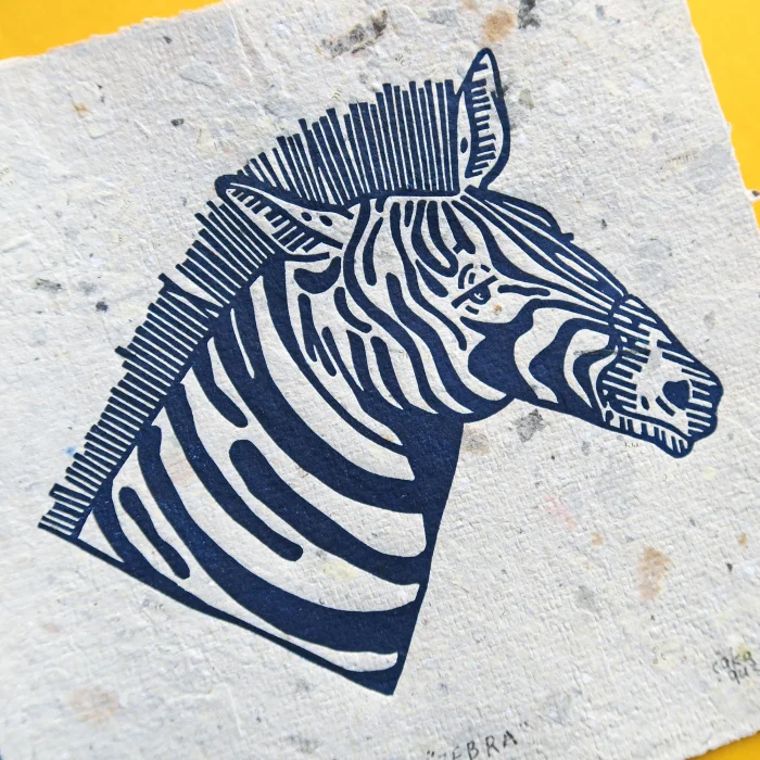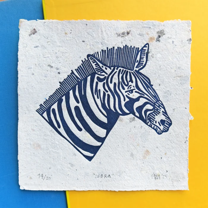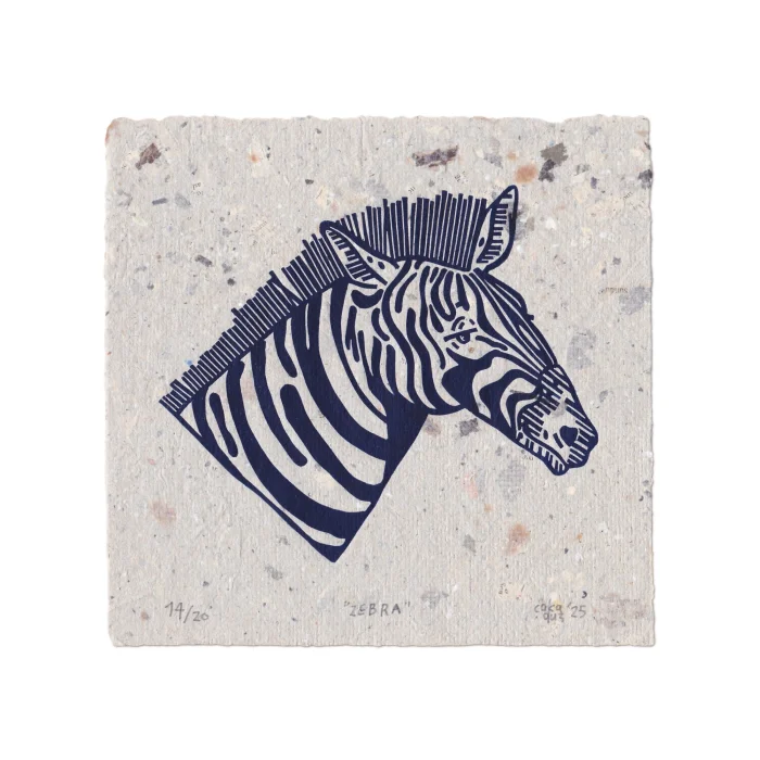 This print is printed on our own recycled handmade paper. It is an eco-friendly artwork that reflects our commitment to sustainable creativity.