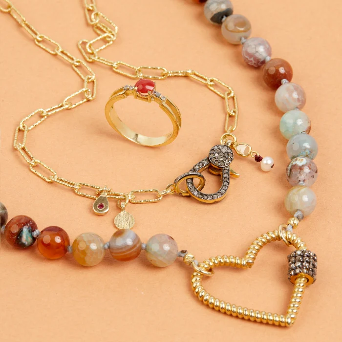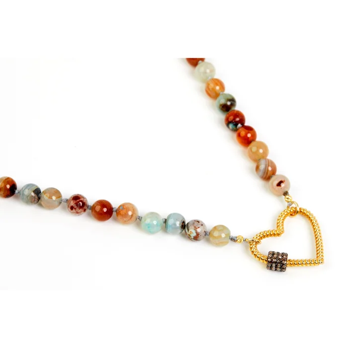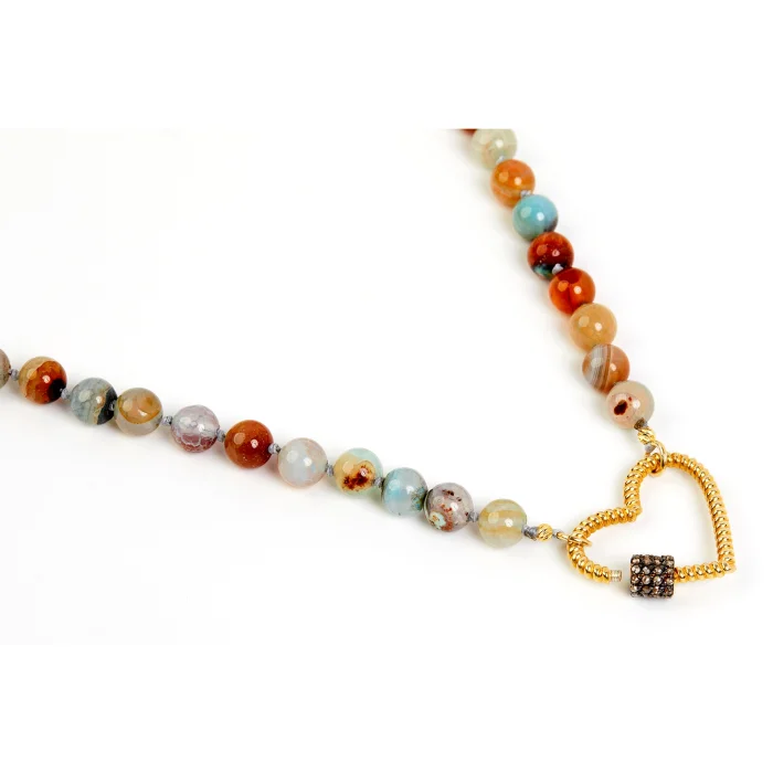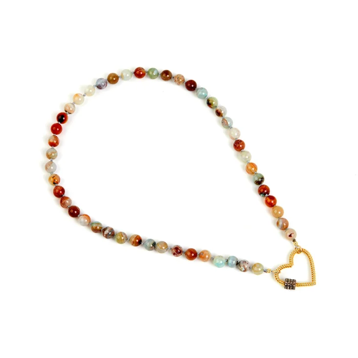 Product: Agate Heart Lock Diamond Necklace - Liora Collection