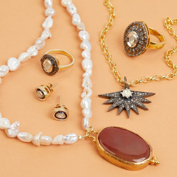 Product: Long Pearl Necklace With Agate Pendant - Avara Collection