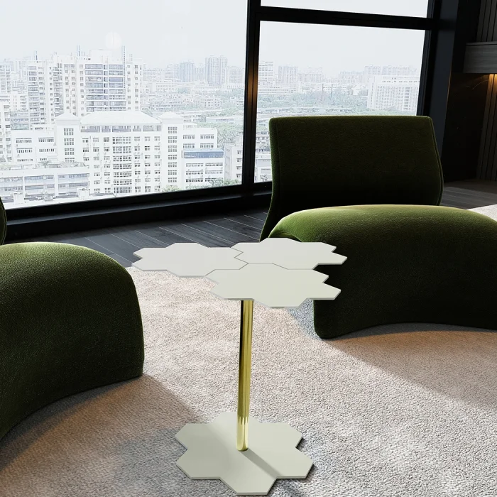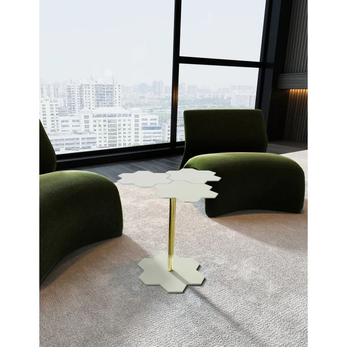 The Aeris Collection reinterprets the order and symmetry at the core of geometry with contemporary metal coffee table design. The dynamic interplay of hexagonal surfaces and 3mm gaps imparts a rhythmic order and visual balance to the design. The similar form at the bottom creates an elegant harmony between the upper and lower sections. The durable steel coffee table structure, combined with minimalist lines, offers long-lasting use, while the geometric coffee table form gives spaces a modern aesthetic. The jersey stands out as a timeless design that reflects the strength that comes from simplicity and the aesthetics of mathematical order.