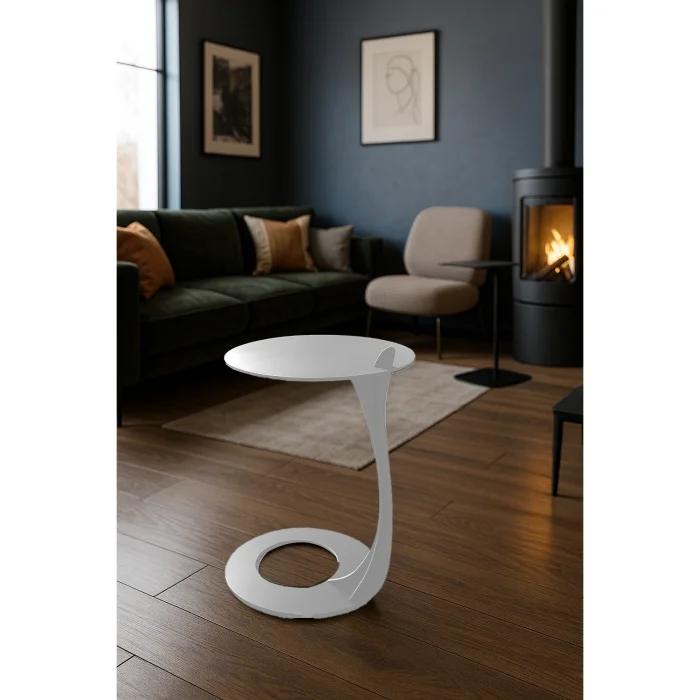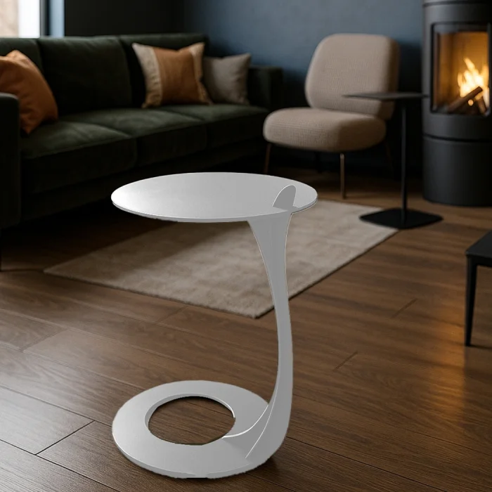 The Ramus Collection is a unique metal coffee table design that brings vitality to metal by drawing inspiration from the elegant forms of nature. Its sinuous form, rising from the circular base, creates a sense of natural flow, reminiscent of a branch from a tree. The top is elegantly balanced at the end of this branch, while the ringed base at the bottom gives the steel coffee table structure both stability and stability. With its sculptural appearance and modern lines, the Ramus metal coffee table combines the elegance of nature with contemporary design. As both an aesthetic and functional object, it adds warmth, balance and elegant integrity to modern living spaces.