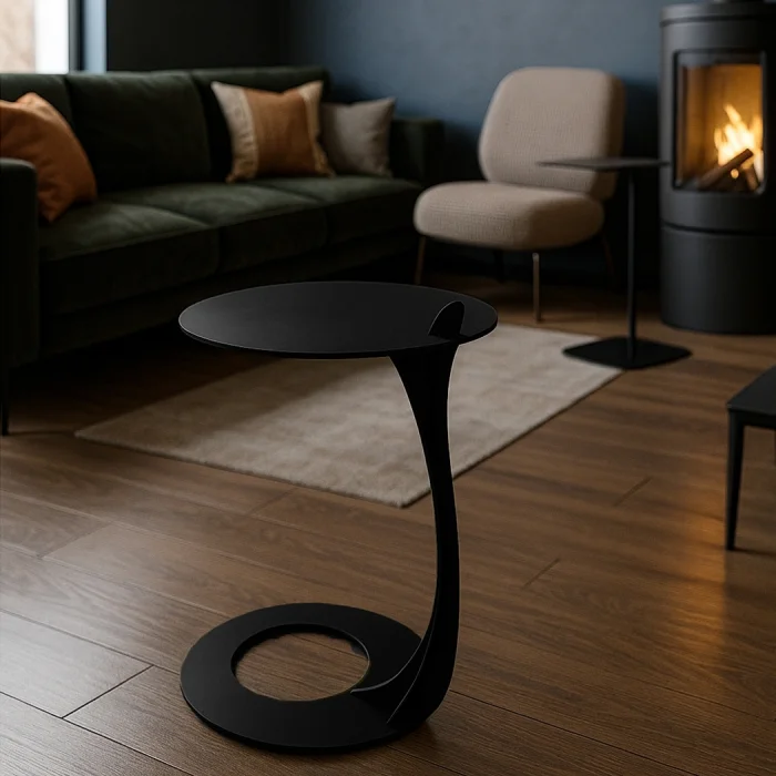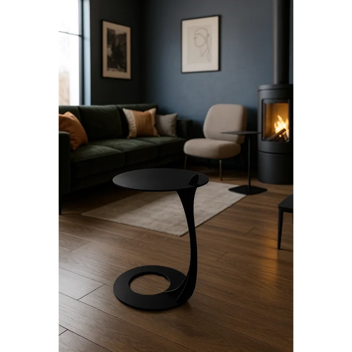 The Ramus Collection is a unique metal coffee table design that brings vitality to metal by drawing inspiration from the elegant forms of nature. Its sinuous form, rising from the circular base, creates a sense of natural flow, reminiscent of a branch from a tree. The top is elegantly balanced at the end of this branch, while the ringed base at the bottom gives the steel coffee table structure both stability and stability. With its sculptural appearance and modern lines, the Ramus metal coffee table combines the elegance of nature with contemporary design. As both an aesthetic and functional object, it adds warmth, balance and elegant integrity to modern living spaces.