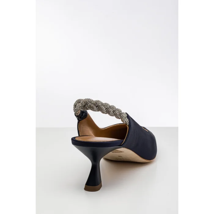 A stylish model that complements elegance with its sparkling satin upper surface and offers comfort all day long with its leather inner lining and durable leather sole.