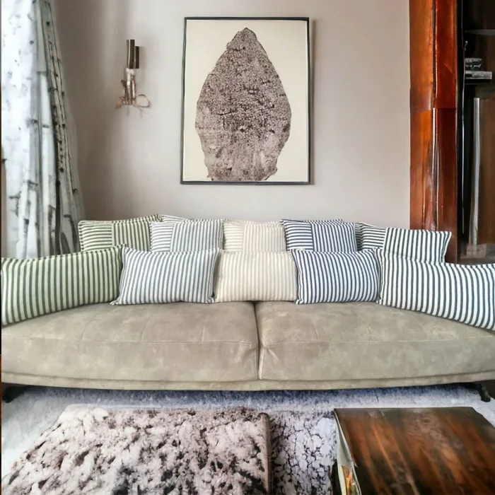 COTTON STRIPED THROW PILLOW Hidden Zipper: Thanks to its hidden zipper, there will be no risk of the pillow sinking anywhere during use. Care Guide: We recommend hand washing, but you can wash it up to 40 degrees on the delicate part of your machine. ; Do not use dryers or bleach. ; Color varieties: You can transform your throw pillow covers into modern living spaces with black, navy blue, khaki green, gray, light brown striped color options and provide a decorative beauty. ; Gift for Her: A nice gift that you can give to your mother, father, lover, sibling, grandmother, grandfather or teacher. ; It is a special gift that you can give on your birthday, Christmas, Valentine's Day or anniversary. ; Durable and Lightweight: The sewing quality is extremely good. ; Therefore, our product is extremely durable. ; Thanks to its lightweight feature, it has a breathable surface. ; It does not sweat and does not breathe during use.;