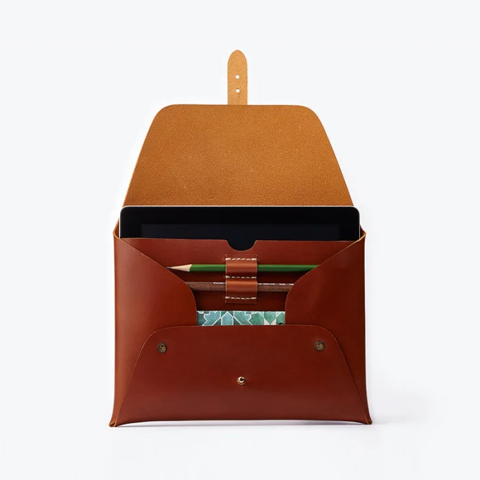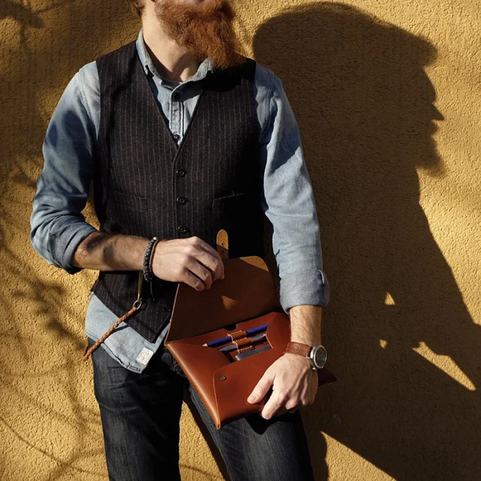 All pieces are cut from cowhide and are saddle-stiched with waxed thread by hand. Custom copper hardware has been used to improve the ease of usage and the durability of our products.