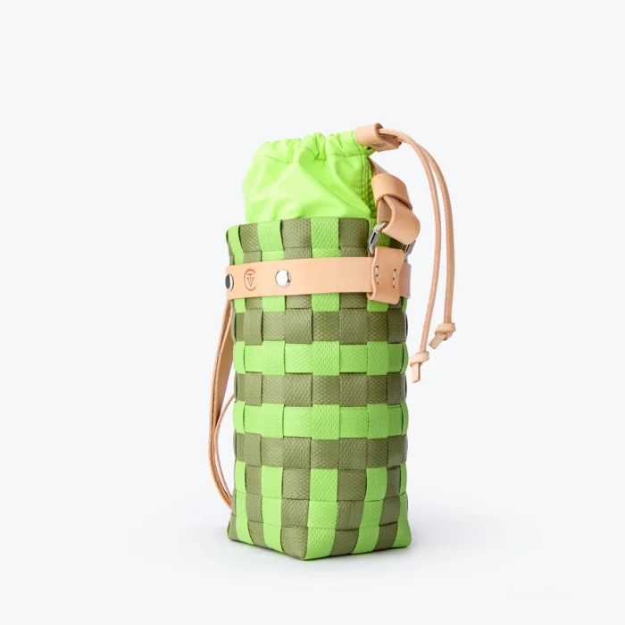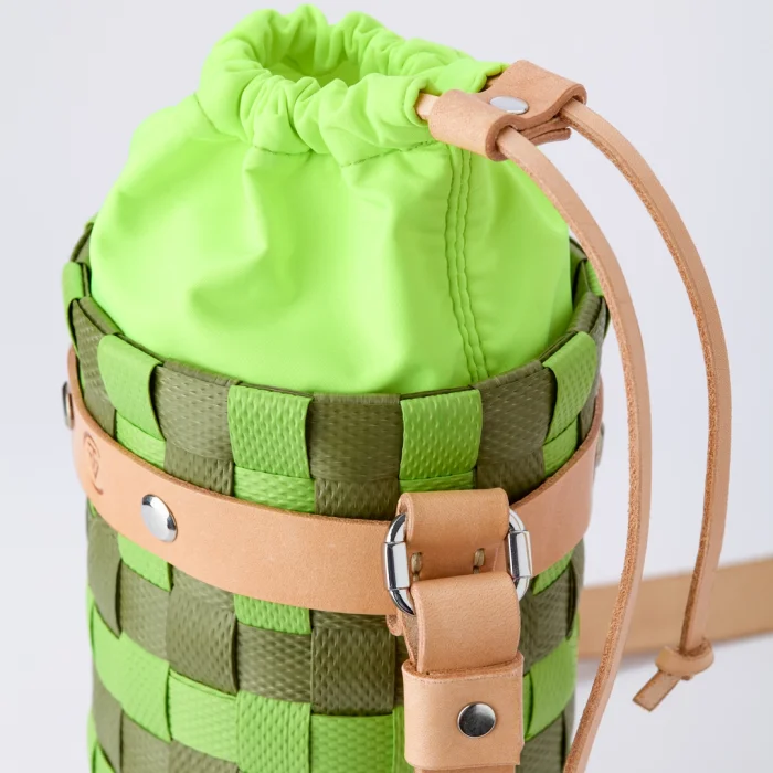 • Water-repellent fabric, closure with leather strip, removable closure Size, 8cm x 20cm / Since the knitting of the baskets is produced by hand,